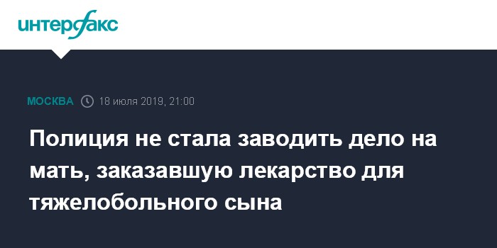 Полиция не стала заводить дело на мать, заказавшую лекарство для тяжелобольного сына