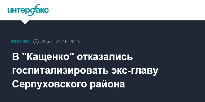Москва. 24 июля. INTERFAX.RU - В столичной психиатрической больнице №1 им. Алексеева ("Кащенко") отказались госпитализировать бывшего главу Серпуховского района Московской области Александра Шестуна, обвиняемого в мошенничестве.