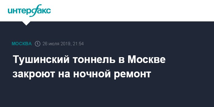 Москва. 26 июля. INTERFAX.RU - В ночь на 27 июля из-за ремонта закроют для проезда автомобилей часть Тушинского тоннеля на Волоколамском шоссе, сообщили в пятницу "Интерфаксу" в Центре организации дорожного движения.
