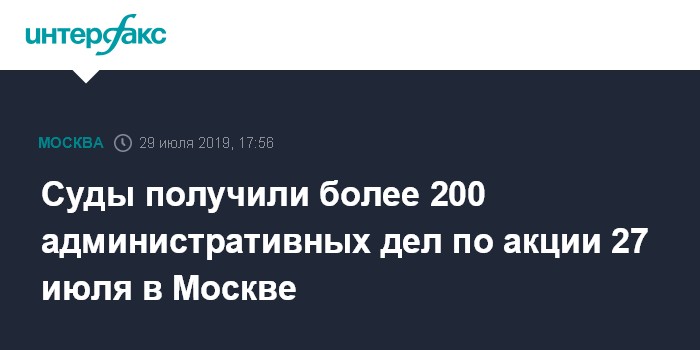 Москва. 29 июля. INTERFAX.RU - Московские суды в понедельник получили несколько сотен протоколов, составленных в отношении организаторов и участников несанкционированной акции 27 июля.