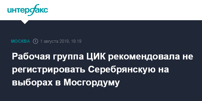 Рабочая группа ЦИК рекомендовала не регистрировать Серебрянскую на выборах в Мосгордуму