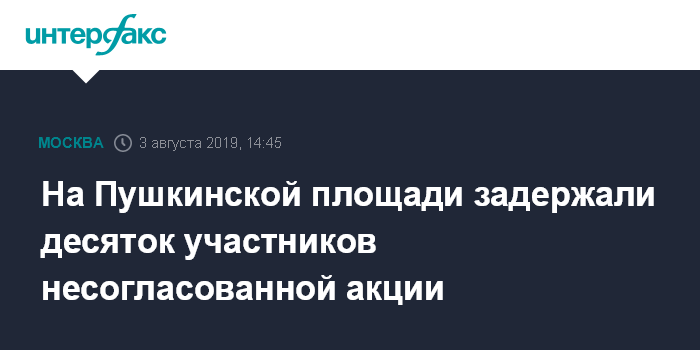 Москва. 3 августа. INTERFAX.RU - Полиция на Пушкинской площади в субботу днем начала задерживать участников несанкционированной акции в поддержку незарегистрированных кандидатов в Мосгордуму, передает корреспондент "Интерфакса".
