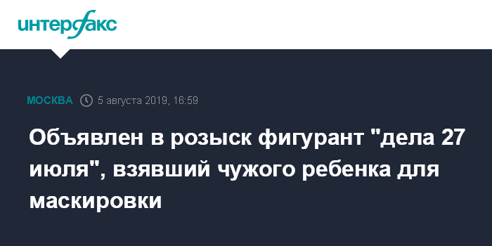 Москва. 5 августа. INTERFAX.RU - Следователи по делу о массовых беспорядках в Москве 27 июля объявили в розыск одного из участников, который покинул зону массовой акции с чужим ребенком на руках.