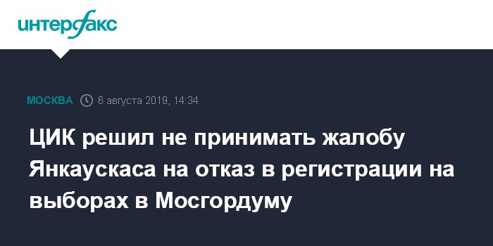 ЦИК решил не принимать жалобу Янкаускаса на отказ в регистрации на выборах в Мосгордуму