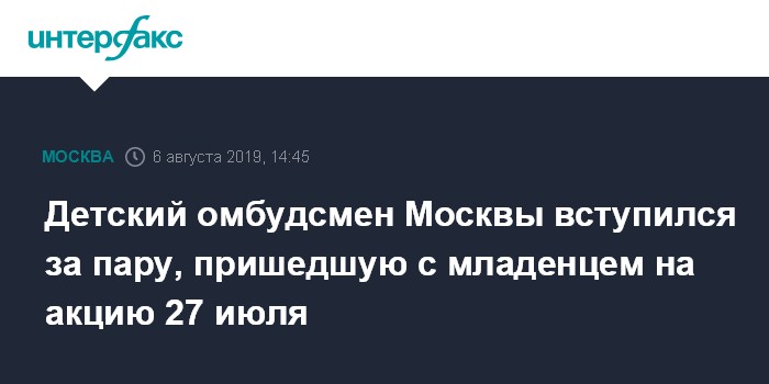 Детский омбудсмен Москвы вступился за пару, пришедшую с младенцем на акцию 27 июля