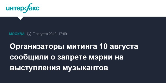 Организаторы митинга 10 августа сообщили о запрете мэрии на выступления музыкантов