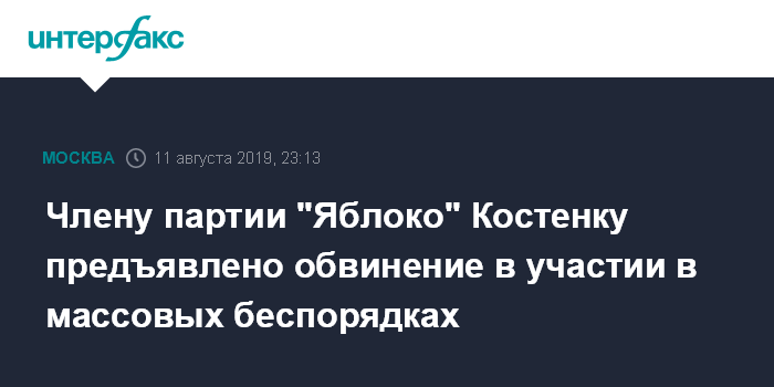 Члену партии "Яблоко" Костенку предъявлено обвинение в участии в массовых беспорядках