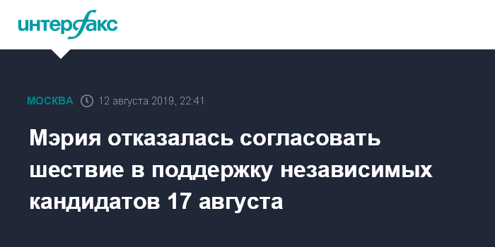 Мэрия отказалась согласовать шествие в поддержку независимых кандидатов 17 августа