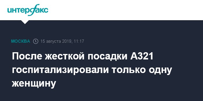Москва. 15 августа. INTERFAX.RU - Минздрав России уточнил, что после жесткой посадки самолета в Подмосковье госпитализирована одна женщина. Остальным 22 пострадавшим помощь оказана амбулаторно.
