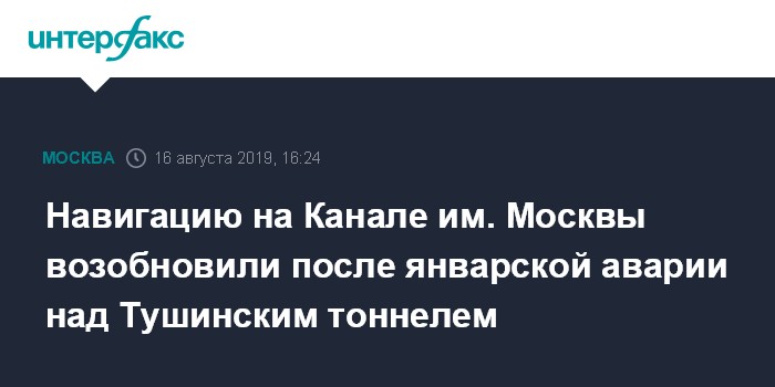 "16 августа утром возобновилось движение судов на "Канале имени Москвы" между шлюзами №7 и №8. Таким образом, завершены первоочередные аварийно-восстановительные работы после январского техногенного ЧП, причиной которого стал некачественно построенный в 2000 году Тушинский тоннель третьей очереди", - сказал собеседник агентства.