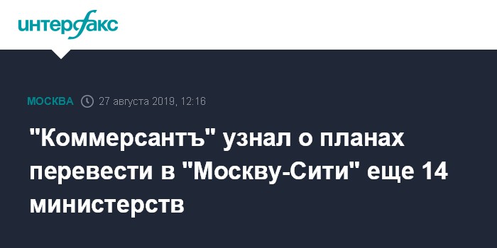 В начале лета 2019 года министр экономического развития Максим Орешкин сказал, что почти все министерства могут переехать в "Москва-Сити", напоминает газета. 27 августа министр планировал провести первое совещание по этому вопросу.
