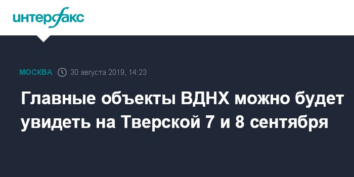 Главные объекты ВДНХ можно будет увидеть на Тверской 7 и 8 сентября