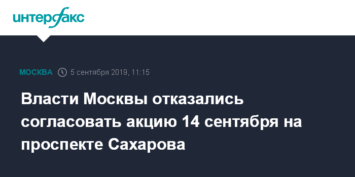 Власти Москвы отказались согласовать акцию 14 сентября на проспекте Сахарова
