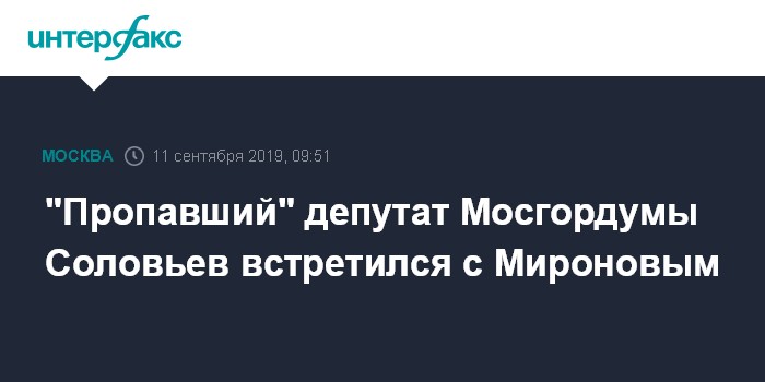 "Пропавший" депутат Мосгордумы Соловьев встретился с Мироновым