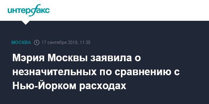 Мэрия Москвы заявила о незначительных по сравнению с Нью-Йорком расходах