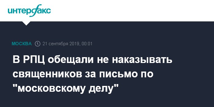 Москва. 20 сентября. INTERFAX.RU - Глава синодального Отдела по взаимоотношениям Церкви с обществом и СМИ Владимир Легойда заявил, что священникам, подписавшим письмо в поддержку фигурнатов "московского дела", не грозит наказание.