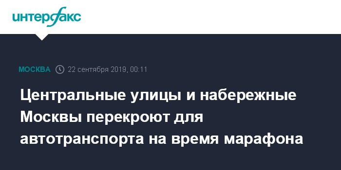 Москва. 22 сентября. INTERFAX.RU - Движение автотранспорта по центральным улицам и набережным российской столицы в воскресенье будет временно ограничено в связи с проведением Московского марафона, сообщили "Интерфаксу" в Центре организации дорожного движения.