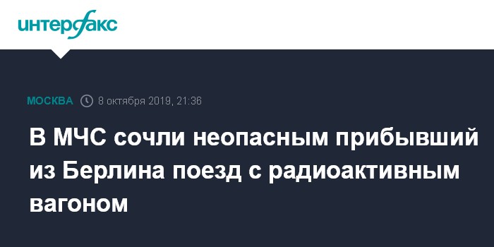 Ранее информированный источник "Интерфакса" сообщил, что экстренные службы в Москве готовятся встретить пассажирский поезд из Германии, где в одном из вагонов зафиксировано многократное превышение радиационного фона.