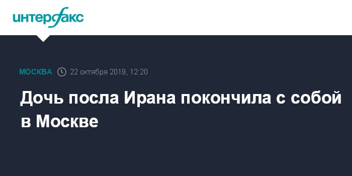 Москва. 22 октября. INTERFAX.RU - Дочь посла Ирана покончила с собой в Москве, сообщил "Интерфаксу" информированный источник.