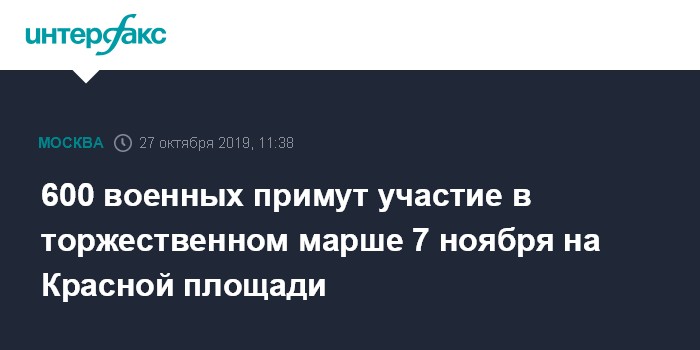 Москва. 27 октября. INTERFAX.RU - В торжественном марше на Красной площади, который пройдет в ознаменование 78-й годовщины проведения военного парада 7 ноября 1941 года, примут участие более 600 военнослужащих соединений и воинских частей, дислоцированных в Москве и Подмосковье, сообщил Западный военный округ (ЗВО).