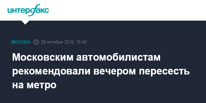 Москва. 29 октября. INTERFAX.RU - Автомобилистам советуют во вторник вечером пересесть на метро, так как в городе прогнозируются восьмибалльные пробки, сообщили в Центре организации дорожного движения (ЦОДД) Москвы.