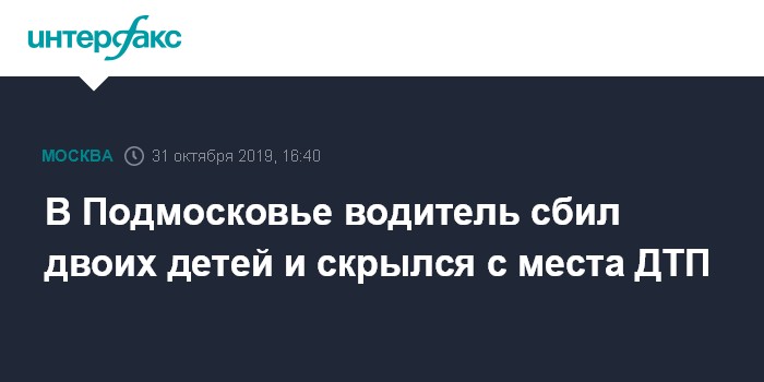 Москва. 31 октября. INTERFAX.RU - Автомобилист в Подмосковье сбил двоих детей на пешеходном переходе и скрылся, его ищут полицейские, сообщили "Интерфаксу" в пресс-службе регионального управления МВД.