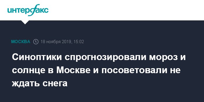 Он отдельно отметил, что снега в Москве в ближайшее время не выпадет. "Снег? Снега ожидать не стоит. Я много раз говорил, что метеорологи - народ добродушный. Но снега и зимой у них не допросишься, если метеорологическая ситуация этому не способствует", - сказал собеседник агентства.