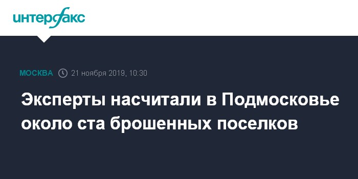 Москва. 21 ноября. INTERFAX.RU - В Московской области сейчас около ста брошенных поселков, подсчитали эксперты "Инком-Недвижимости". Треть из этих поселков пустует больше пяти лет, шансы на их возрождение минимальны, считают специалисты.