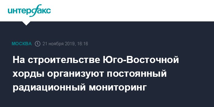 Москва. 21 ноября. INTERFAX.RU - Специалисты государственного предприятия "Радон", специализирующегося на работе с радиоактивными отходами, будут вести радиоэкологический мониторинг строительства московской автомагистрали Юго-Восточная хорда (ЮВХ), заявил журналистам директор ГКУ "Управление дорожно-мостового строительства" Василий Десятков.
