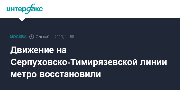 Москва. 7 декабря. INTERFAX.RU - Движение на Серпуховско-Тимирязевской линии восстановили после сбоя, сообщила пресс-служба столичного метро в субботу.