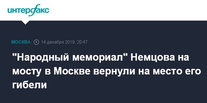 Москва. 14 декабря. INTERFAX.RU - Сопредседатель московского отделения партии ПАРНАС Михаил Шнейдер сообщил, что после реконструкции Большого Москворецкого моста мемориал Бориса Немцова перенесли на прежнее место.