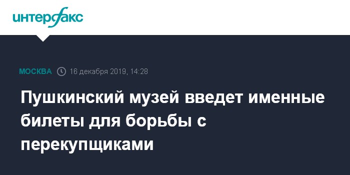 Москва. 16 декабря. INTERFAX.RU - Пушкинский музей собирается для борьбы с перекупщиками перейти на именные билеты для посетителей крупных выставок.