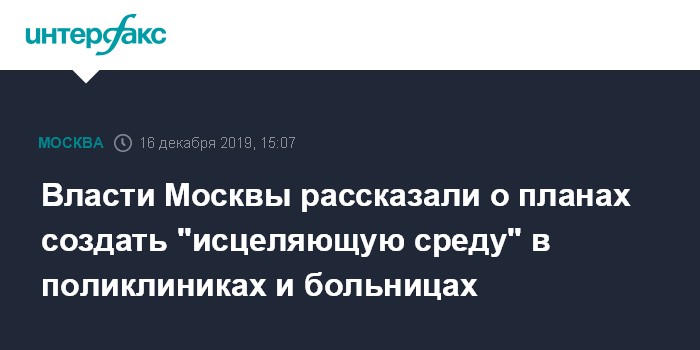 Власти Москвы рассказали о планах создать "исцеляющую среду" в поликлиниках и больницах