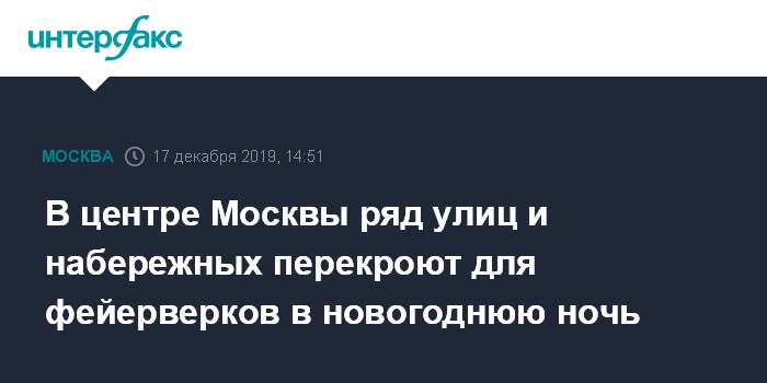 Москва. 17 декабря. INTERFAX.RU - В центре Москвы в новогоднюю ночь будут перекрывать движение на набережных и некоторых улицах ради запуска фейерверков, сообщили в Центре организации дорожного движения.