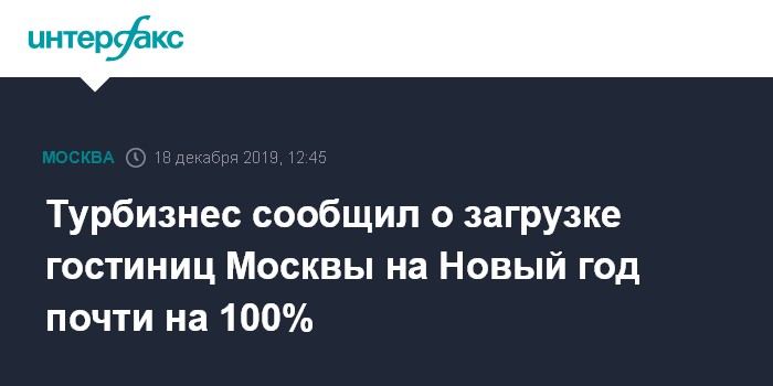Москва. 18 декабря. INTERFAX.RU - Гостиницы Москвы загружены на Новый год почти на 100%, часть экскурсионных групп стала приезжать уже в середине декабря, раньше, чем в прошлом году, сообщила "Интерфаксу" пресс-секретарь Российского союза туриндустрии (РСТ) Ирина Тюрина.