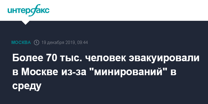 Пик "минирований" пока приходится на 10 декабря, когда в Москве с примерно 400 объектов было эвакуировано свыше 120 тыс. человек.