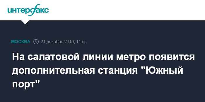Москва. 21 декабря. INTERFAX.RU - На территории промышленной зоны "Южный порт" планируется построить дополнительную станцию Люблинско-Дмитровской линии метро, сообщил журналистам в субботу заместитель мэра столицы по вопросам градостроительной политики и строительства Марат Хуснуллин.