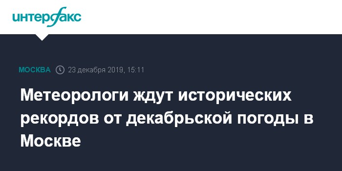 Декабрь 2019 года также пока остается самым бесснежным. До конца текущей недели (29 декабря) в городе не ожидается ни снега, ни мороза. По данным московского метеобюро, с начала декабря в городе выпало 16 мм при норме 56 мм.