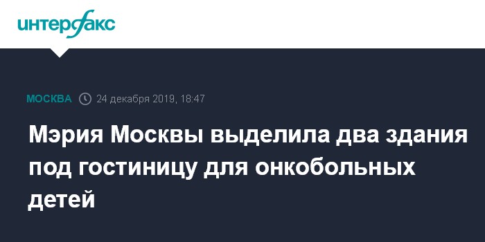 Мэрия Москвы выделила два здания под гостиницу для онкобольных детей