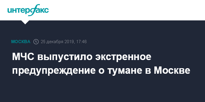 Москва. 25 декабря. INTERFAX.RU - Главное управление МЧС по Москве распространило экстренное предупреждение о тумане в ночь на четверг.