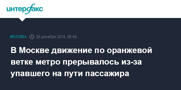 Москва. 26 декабря. INTERFAX.RU - В московском метро движение по Калужско-Рижской линии прерывали в утренний час пик из-за упавшего на рельсы пассажира. Инцидент с пассажиром произошел около 8:25 на станции "Китай-города", рассказал информированный источник "Интерфакса".