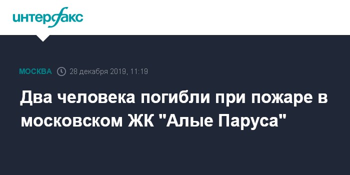 Москва. 28 декабря. INTERFAX.RU - Два человека погибли в результате пожара в жилом комплексе "Алые Паруса" в субботу, сообщает ГУ МЧС России по Москве.