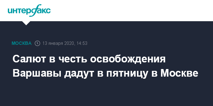 Салют в честь освобождения Варшавы дадут в пятницу в Москве