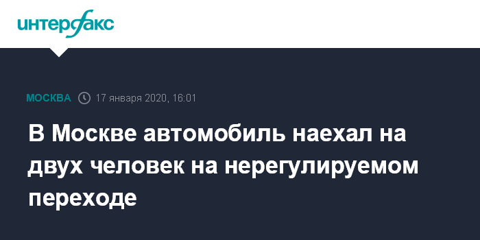 Москва. 17 января. INTERFAX.RU - В результате наезда машины на пешеходов на нерегулируемом переходе в Москве пострадали два человека, в том числе ребенок.