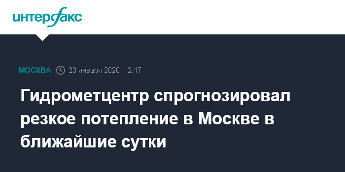 Ранее исполняющий обязанности руководителя Гидрометцентра Роман Вильфанд сообщил "Интерфаксу", что воздух в Москве в ночь на среду, 22 января прогрелся до +4,3 градуса, что на полградуса больше рекорда, установленного в 1999 году. "Хоть я и не любитель рекордов, но сегодня все-таки был взят температурный рекорд в Москве 1999 года. Около нуля часов в среду было +4,3 градуса, в 1999 году было +3,8 градуса", - сказал синоптик.