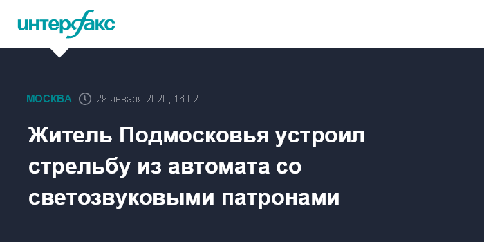 Москва. 29 января. INTERFAX.RU - Правоохранительные органы задержали мужчину, устроившего стрельбу из охолощенного автомата со светозвуковыми патронами на улице в Подмосковье, сообщила "Интерфаксу" начальник пресс-службы Главного управления МВД России по Московской области Татьяна Петрова.