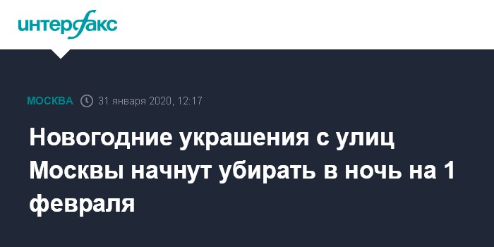 Новогодние украшения с улиц Москвы начнут убирать в ночь на 1 февраля