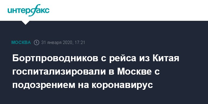 "Несколько членов кабинного экипажа в пятницу после возвращения из Китая в Москву обратились к медикам с симптомами, характерными для коронавируса. Их госпитализировали, им предстоит пройти серию тестов", - сказал источник.