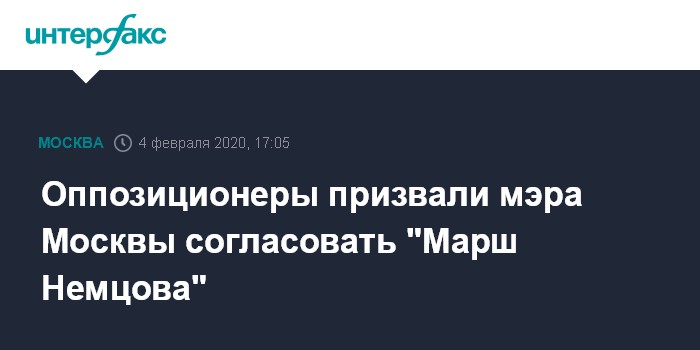 Москва. 4 февраля. INTERFAX.RU - Группа оппозиционеров направила мэру Москвы Сергею Собянину открытое письмо, в котором они просят не препятствовать проведению марша памяти Бориса Немцова 29 февраля.