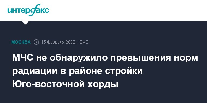 Москва. 15 февраля. INTERFAX.RU - Превышения норм радиации в районе залегания могильника с радиоактивными отходами вблизи строительства Юго-восточной хорды не зафиксировано, сообщили "Интерфаксу" в пресс-службе МЧС Москвы в субботу.